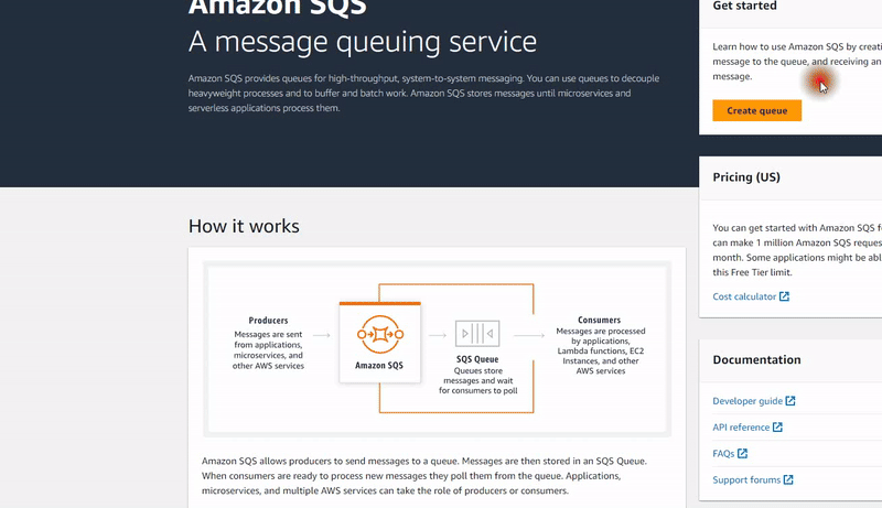İlk olarak Amazon Management Console üzerinden SQS servisine gidelim.