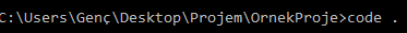 Locate işleminden sonra ilgili dizinde aşağıdaki komutu yazarak projeyi komple Visual Studio Code ortamına taşımış olursunuz.