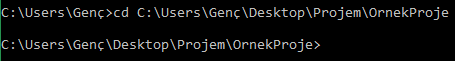 Bir önceki makalede “OrnekProje” isminde bir Angular 4 projesi oluşturmuştuk. “Başlat” -> “Komut İstemi” kombinasyonuyla komut penceresine gelerek “OrnekProje” isimli klasöre “cd” komutu ile locate oluyoruz.