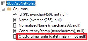 Bu işlem migrate neticesinde oluşturulacak fiziksel tabloya aşağıdaki gibi yansıyacaktır;