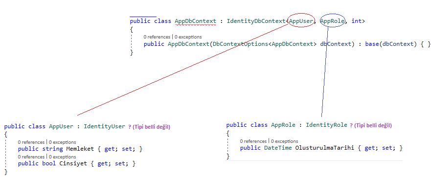 Bu işlem için DbContext sınıfımızdaki base class olan “IdentityDbContext” sınıfının sonuncu generic parametresine istediğimiz tipi vermemiz yeterli olacaktır.
