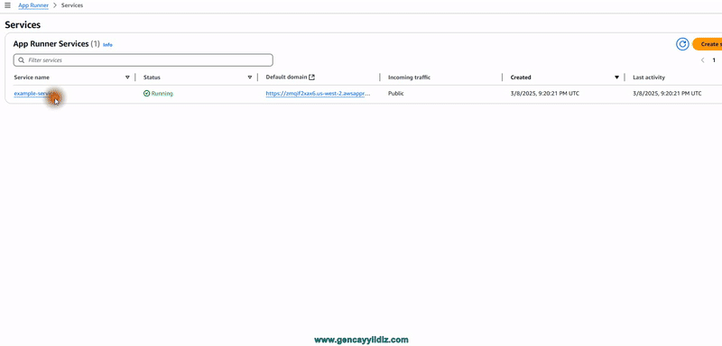 böylece uygulamamızın AWS App Runner aracılığıyla başarıyla deploy edildiğini görmüş olacağız…