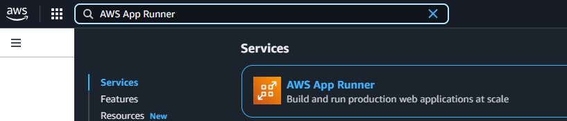 AWS Management Console üzerinden AWS App Runner servisine gelelim,