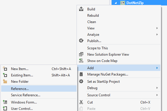 Bu dosyayı projemize entegre edebilmek için, projemize sağ tıklayarak “Add” -> “Reference” kombinasyonunu takip ediniz.