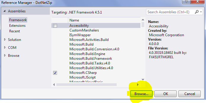 Son olarak “Reference Manager” penceresine Check edilmiş bir vaziyette gelen “Ionic.Zip.dll” dosyasını göreceksiniz.”OK” butonuna tıklayıp “Ionic.Zip.dll” dosyasını projenize entegre işlemini sona erdiriniz.