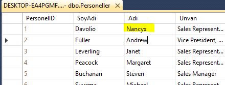 cmd = new SqlCommand("Select PersonelID, Adi, SoyAdi, Unvan from dbo.Personeller", baglanti);