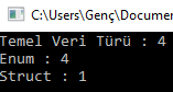 Console.WriteLine($"Temel Veri Türü : {sizeTemelVeriTuru}");