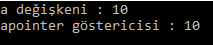 Üretilen pointer “a” değişkeninin bellekteki adresini tutan bir pointerdır. Eee haliyle bu pointerı da “apointer” isimli pointer ile refere etmekteyiz.