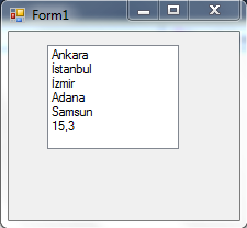 lsbSehirler.Items.Add(15.3f); // index : 5
