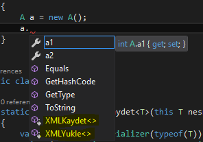 Gördüğünüz gibi nesnemiz üzerinde Extension metodlara erişebilmekteyiz. Burada sadece A tipinden nesne üzerinde görsel örneklendirme yapılmıştır. Tabi ki de diğer tüm nesnelerde de aynı Extension metodlara erişilebilmektedir.