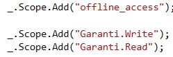 hem de client uygulamasının ‘Startup.cs’ dosyasında ‘Scope.Add’ ile eklenen değerlerini