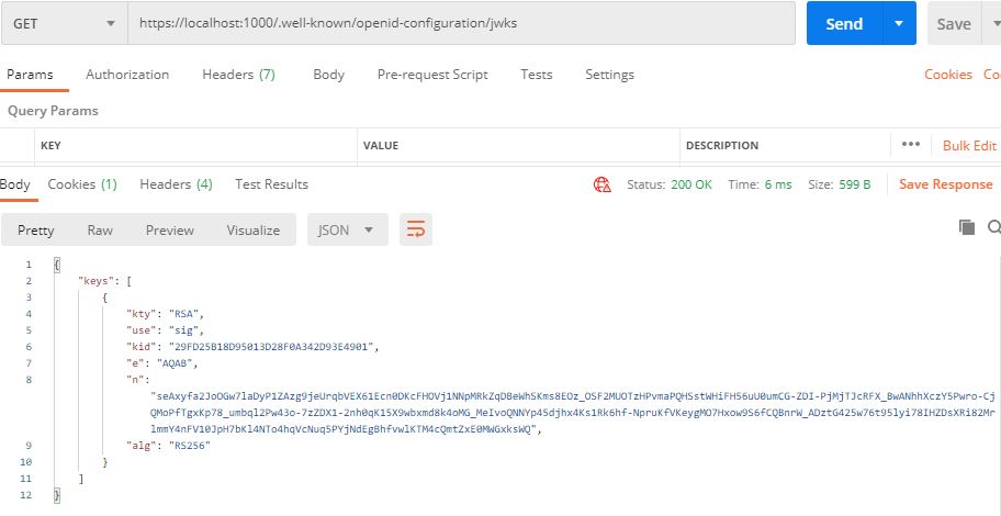 Ayrıca yeri gelmişken yukarıda referans edilen önceki makaledeki(Client Credentials) bir noktayı ilgilendiren nazik bir hususa değinmekte fayda vardır. Discovery Endpoint’e yapılan istek neticesinde gelen result’un ikinci özelliği olan ‘jwks_uri’ değerine göz atarsanız eğer API’ların public key almak için IdentityServer4 uygulamasında istek attıkları endpoint’i göreceksiniz. Evet… Bu endpoint’e bizler manuel istek göndermesekte; API’lar, client’tan gelen token’ın Auth Server’dan gelip gelmediğini doğrulayabilmek için ilgili token’da ki private key değerine karşılık Auth Server’dan bu endpoint ile public key’i talep etmektedirler. Gelen public key ile private key check edilip, doğrulamayı gerçekleştirirler… Dolayısıyla API’ın otomatik bir şekilde bu endpoint’e yaptığı isteği bizler manuel olarak icra edersek doğal olarak public key’i gözlemleme fırsatı elde edebiliriz.