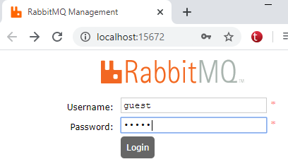 localhost:15672 adresini açtınız zaman ilk olarak sizi bir giriş sayfası karşılayacaktır.