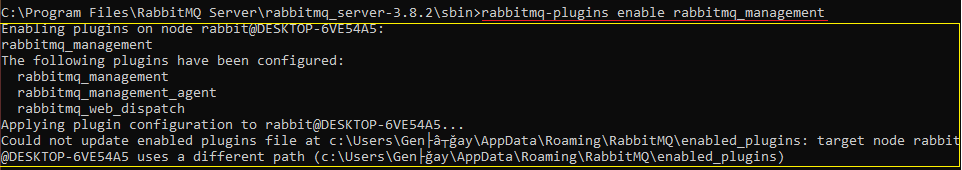 - Ve en son tekrardan rabbitmq-plugins enable rabbitmq_management komutunu çalıştırınız.