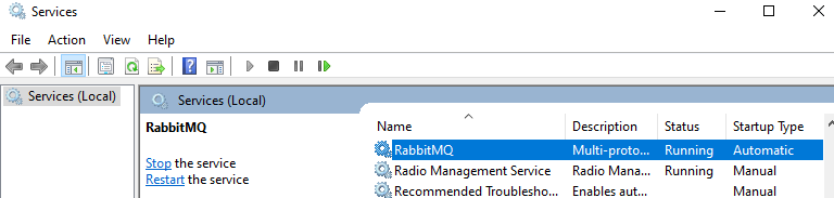 Yükleme işleminin ardından işletim sistemi servislerine göz atarsanız eğer RabbitMQ sunucusunun arkaplanda hali hazır çalışıyor vaziyette olduğunu göreceksiniz.